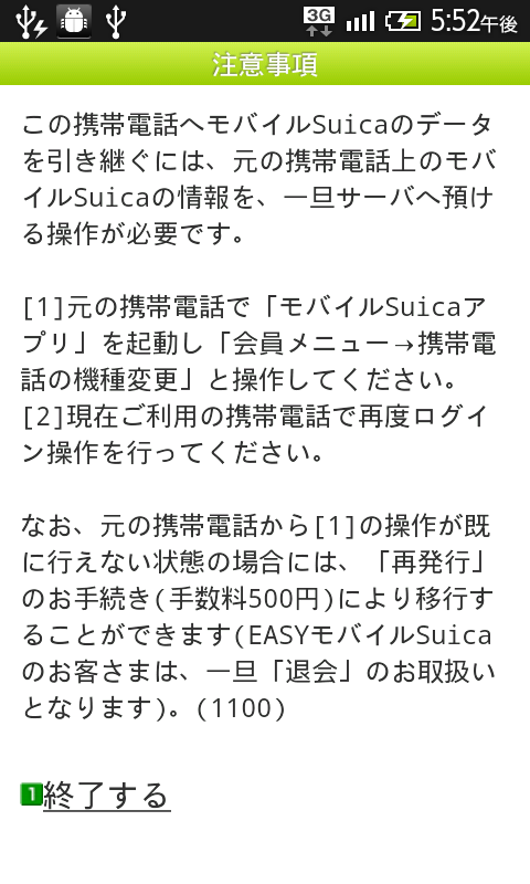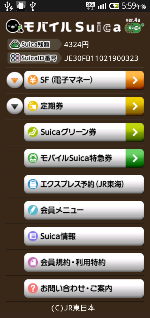 先週末に公開されたモバイルSUICAをGALAPAGOS(003SH)にインストールしてみました。