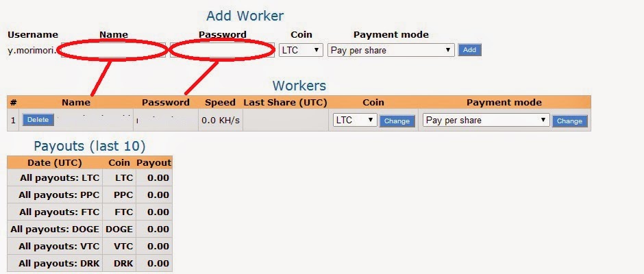 LiteCoinQtで取得したAddressをPayout Addressに入力します。