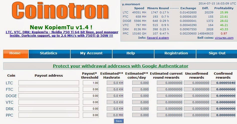Coinotronって集団採掘所に登録。